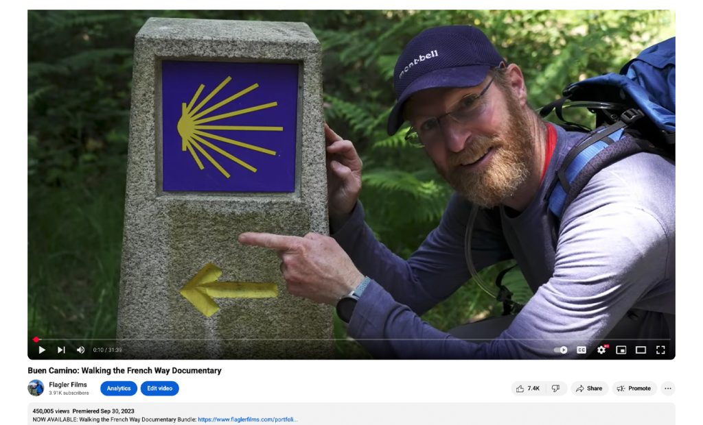 The Flagler Films documentary Buen Camino: Walking the French Way has reached a major milestone on YouTube. The 32-minute film now has over 450,000 views, over 7,400 likes and countless positive comments.